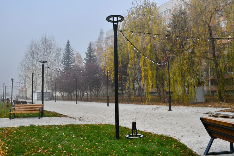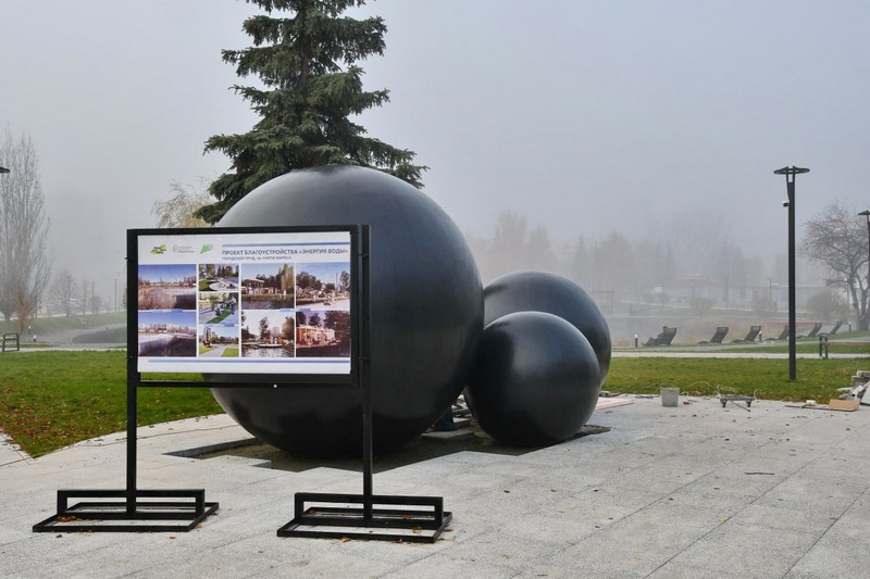 Жители уже обратили внимание, что на благоустроенной территории установлены декоративные элементы «Неон», «Озон» и «Платина», арт-объект «Атом» (три сферы диаметрами 3, 2 и 1 метр, изготовлены из металла).