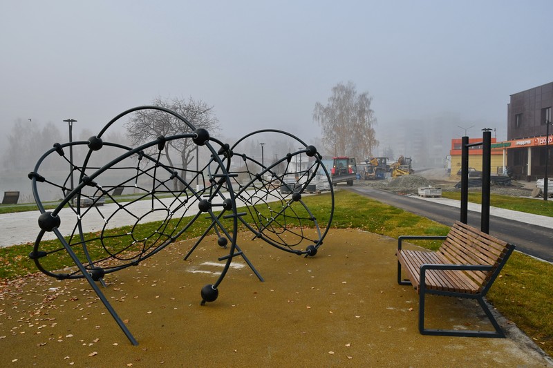 Напомним, что в ходе реализации проекта для улучшения эксплуатационных качеств в него был внесён ряд изменений: укреплён грунт, забетонированы основания смотровых площадок, уложен рулонный газон (более 6 тысяч квадратных метров), расширена пешеходная дорожка вокруг пруда и выполнено безопасное резиновое покрытие. Помимо этого, в первоначальном варианте проекта не было учтено ограждение вокруг пруда, сейчас оно разрабатывается совместно с Министерством строительства Челябинской области, оно будет подрядчиком установлено. Также один из крупных объектов – это подвесные качели под навесом «Оазис», конструкция уже смонтирована, осталось закрепить три качели.