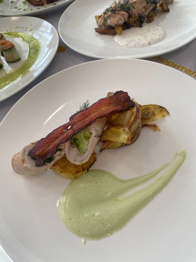 Набор продуктов был помещен в черный ящик и открывался только перед самым приготовлением. Команда озерчан, под руководством шеф-повара отеля «Смолино парк», подготовила белорусское блюдо "Дары полей".