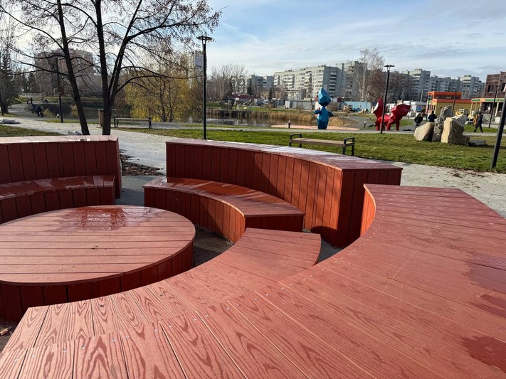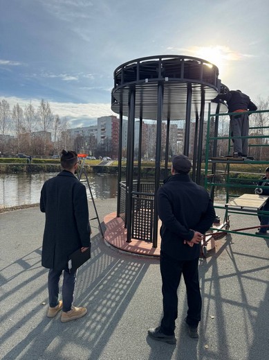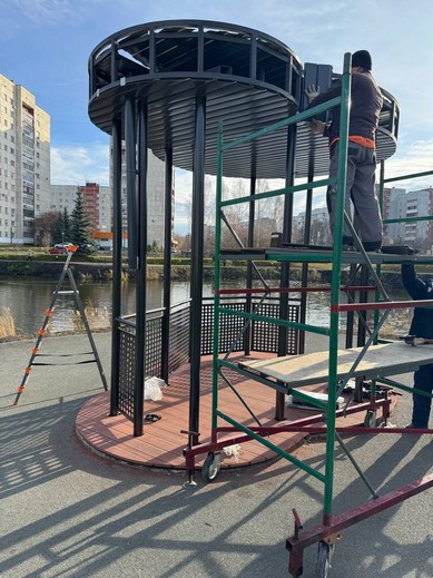 В настоящее время на объекте идут завершающие работы: обрезка плитки, обшивка беседки, устраняются мелкие недочёты, укладывается плитка на тротуаре, который идёт в сторону улицы Дзержинского. На сегодняшний день уже изготовлено и устанавливается ограждение вокруг водной глади. Напомним, что оно не было предусмотрено проектом, но было выполнено дополнительно, его проект был разработан совместно с Министерством строительства Челябинской области. Ограждение получилось аккуратное и вписалось в общую концепцию. Хочется отметить, что беседка на фоне пруда станет красивой новой фотозоной.