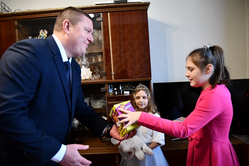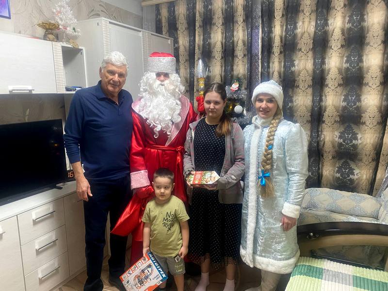В этом году старт акции дали председатель Собрания депутатов Вадим Каримов и депутат Игорь Лапшин. Они побывали в двух семьях, проживающих в мкр. Татыш: в одной навестили Аню и Женю, в другой – 14-летнего Романа. У нарядных домашних елочек дети получили сладкие подарки.
