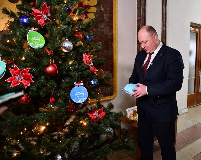 В канун Нового года на праздничной ёлке в администрации Озерского городского округа появились шары с новогодними пожеланиями детей, которые верят в новогоднее волшебство.